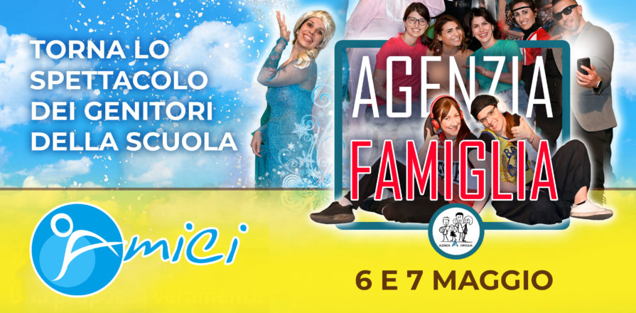 “Agenzia famiglia", il nuovo spettacolo de “Gli Amici di Maria… Immacolata" ti aspetta sabato 6 e domenica 7 maggio presso il Salone-Teatro della Scuola Maria Immacolata.