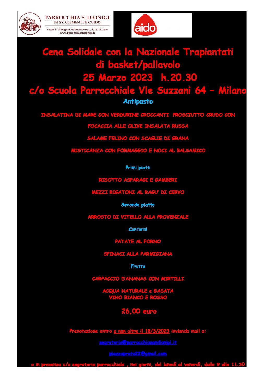 Cena solidale con la Nazionale Trapiantati di basket e pallavolo
