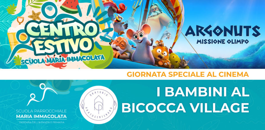 Mercoledì 12 Luglio 2023, dopo il pranzo delle 12.30, tutti i bambini della Scuola Primaria e secondaria di primo grado, iscritti alla seconda settimana di Centro Estivo, si recheranno con i mezzi pubblici – accompagnati dai loro educatori – presso l'UCI Cinema Bicocca (Via Chiese 126, Milano).