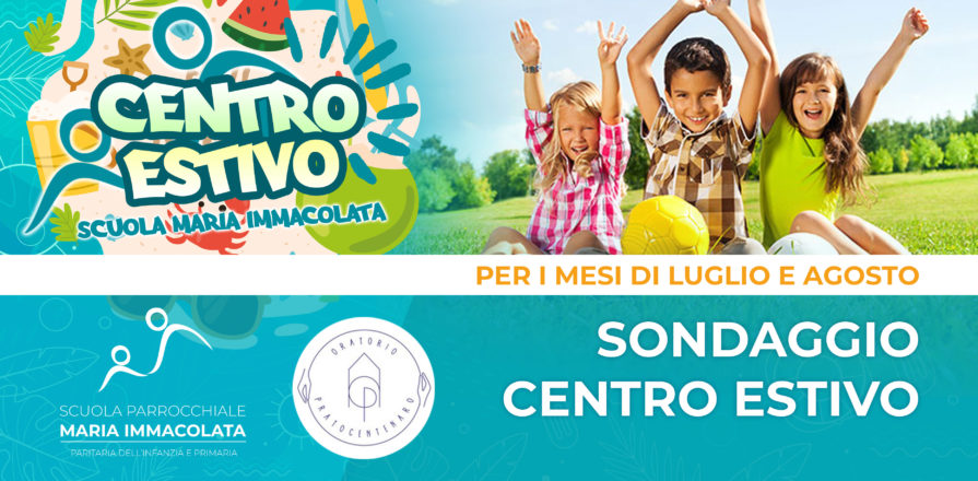 - Il Centro Estivo per i bambini dai 6 ai 13 anni (che abbiano frequentato almeno il primo anno della Scuola Primaria) presso l’Oratorio di Via De Martino, dal 3 luglio al 4 agosto 2023 – per tutti i bambini (anche non iscritti nella nostra scuola) dalla prima alla quinta classe della Scuola Primaria. Le iscrizioni saranno presso la segreteria della scuola e l’esperienza verrà coordinata dall’educatore Riccardo Lanzarone.