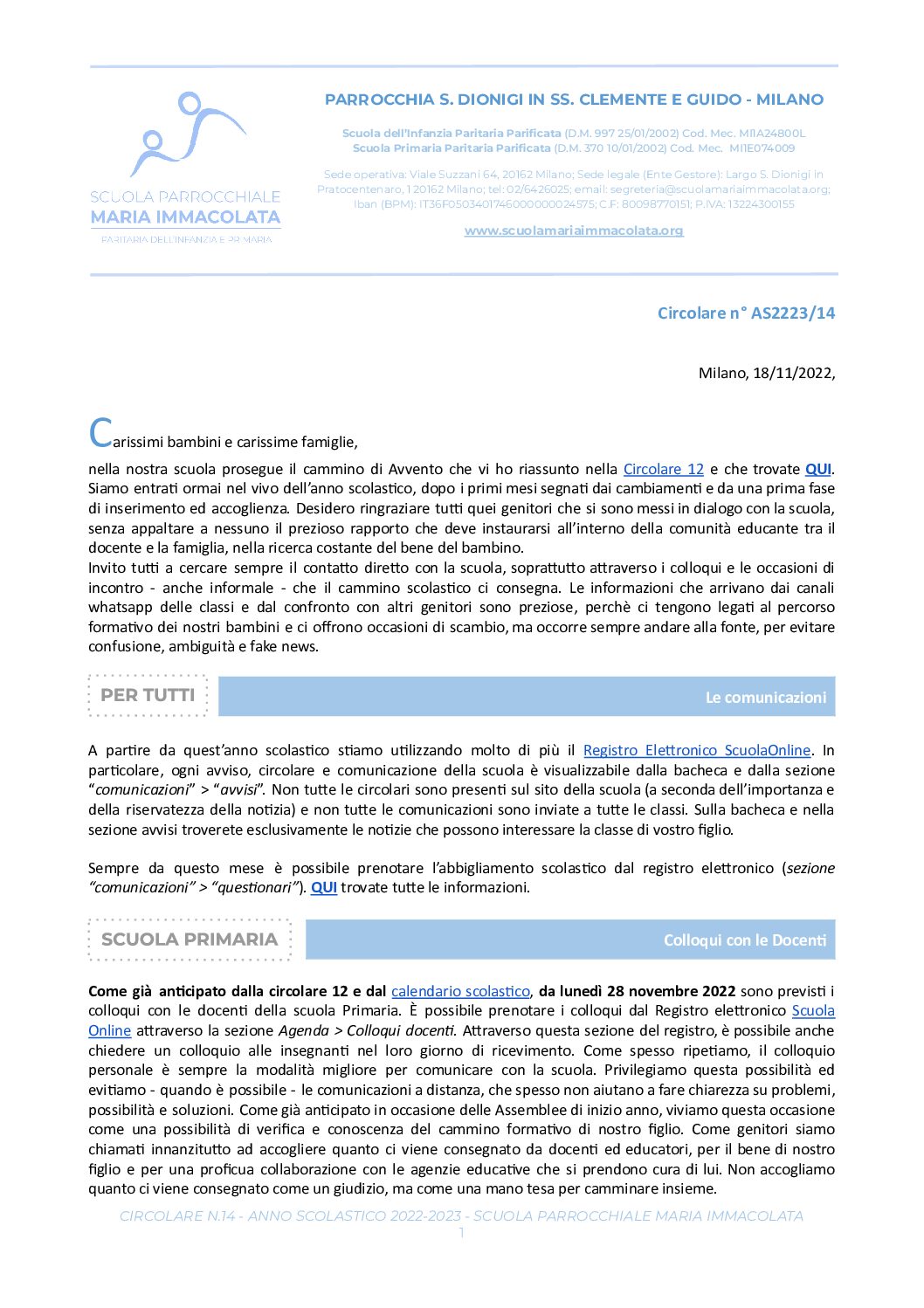 Circolare del 18 Novembre 2022