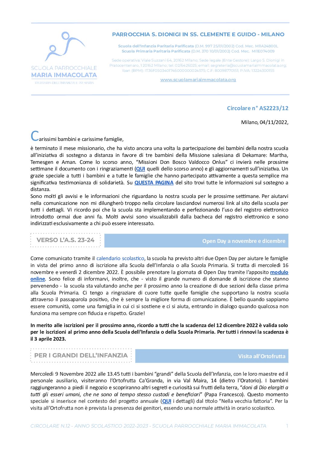 Sono molti gli avvisi e le informazioni che riguardano la nostra scuola per le prossime settimane. CLICCA SULL'IMMAGINE A DESTRA PER SCARICARE LA CIRCOLARE.