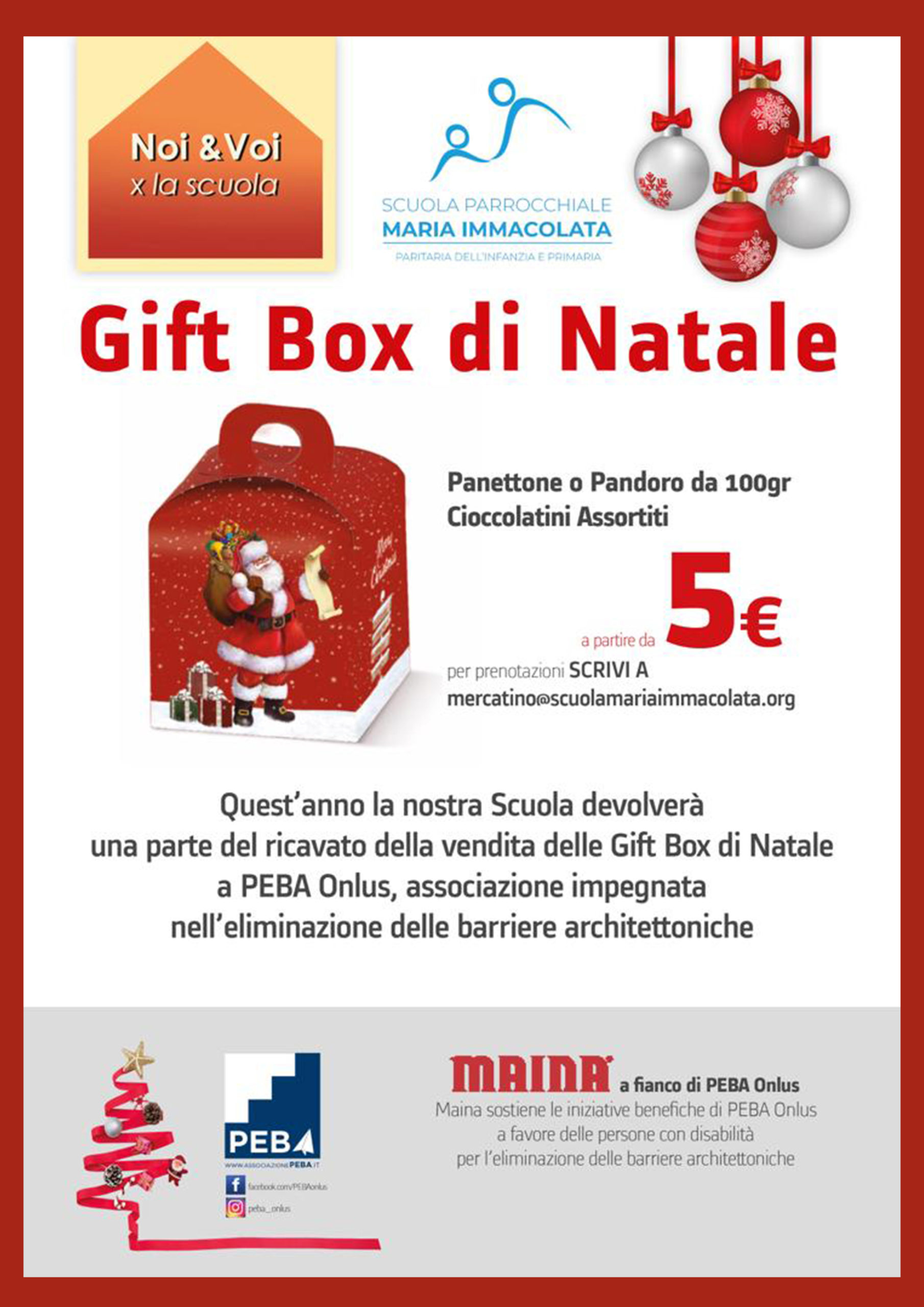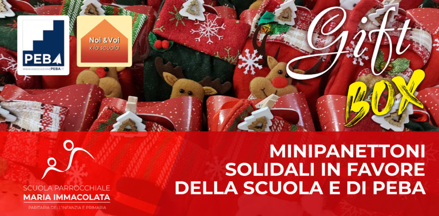 Regalati un dolce Natale con le “Gift Box” della Scuola! Bellissimi minipandori e minipanettoni confezionati con incarto natalizio e decorazione. Puoi richiedere una Gift box mandando una mail a mercatino@scuolamariaimmacolata.org