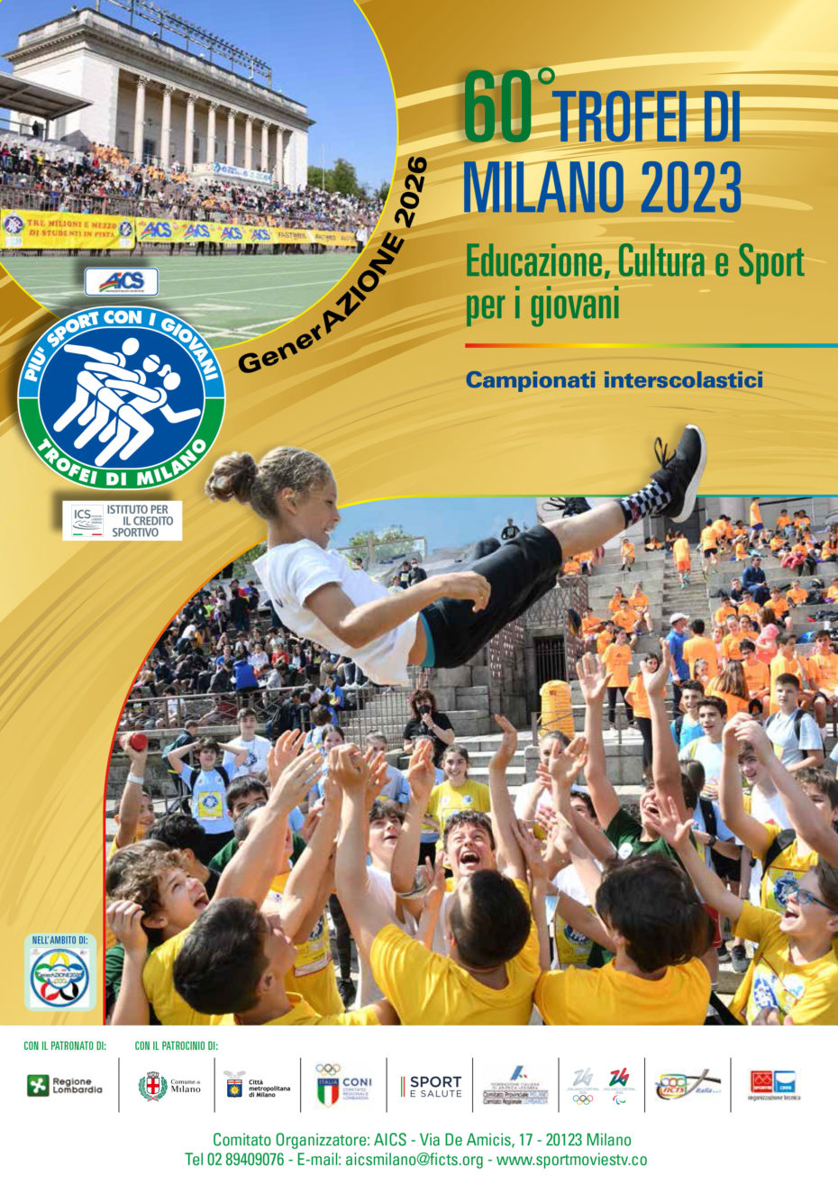 Anche quest’anno la nostra scuola parteciperà ai “Trofei di Milano 2023”, la manifestazione sportiva promossa dall’Associazione Italiana Cultura Sport (AICS) di Milano (Ente di Promozione Sportiva riconosciuto dal CONI) presso l’Arena Brera. Parteciperemo giovedì 11 maggio 2023 con le classi terza, quarta e quinta e venerdì 12 maggio con tutte le classi della Scuola Primaria.