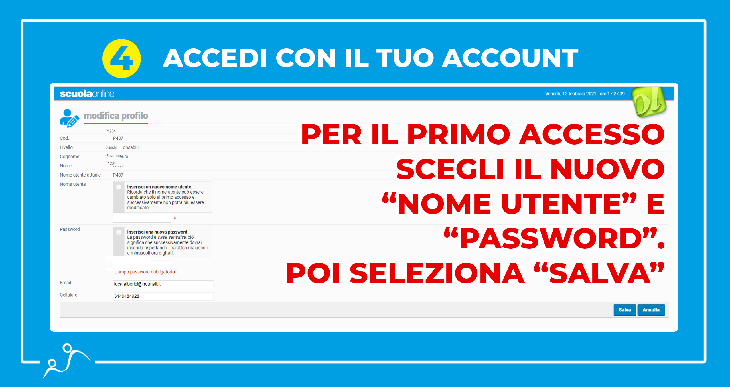 L’account verrà recapitato ai genitori dei bambini iscritti alla Scuola dell’Infanzia e alla Scuola Primaria.