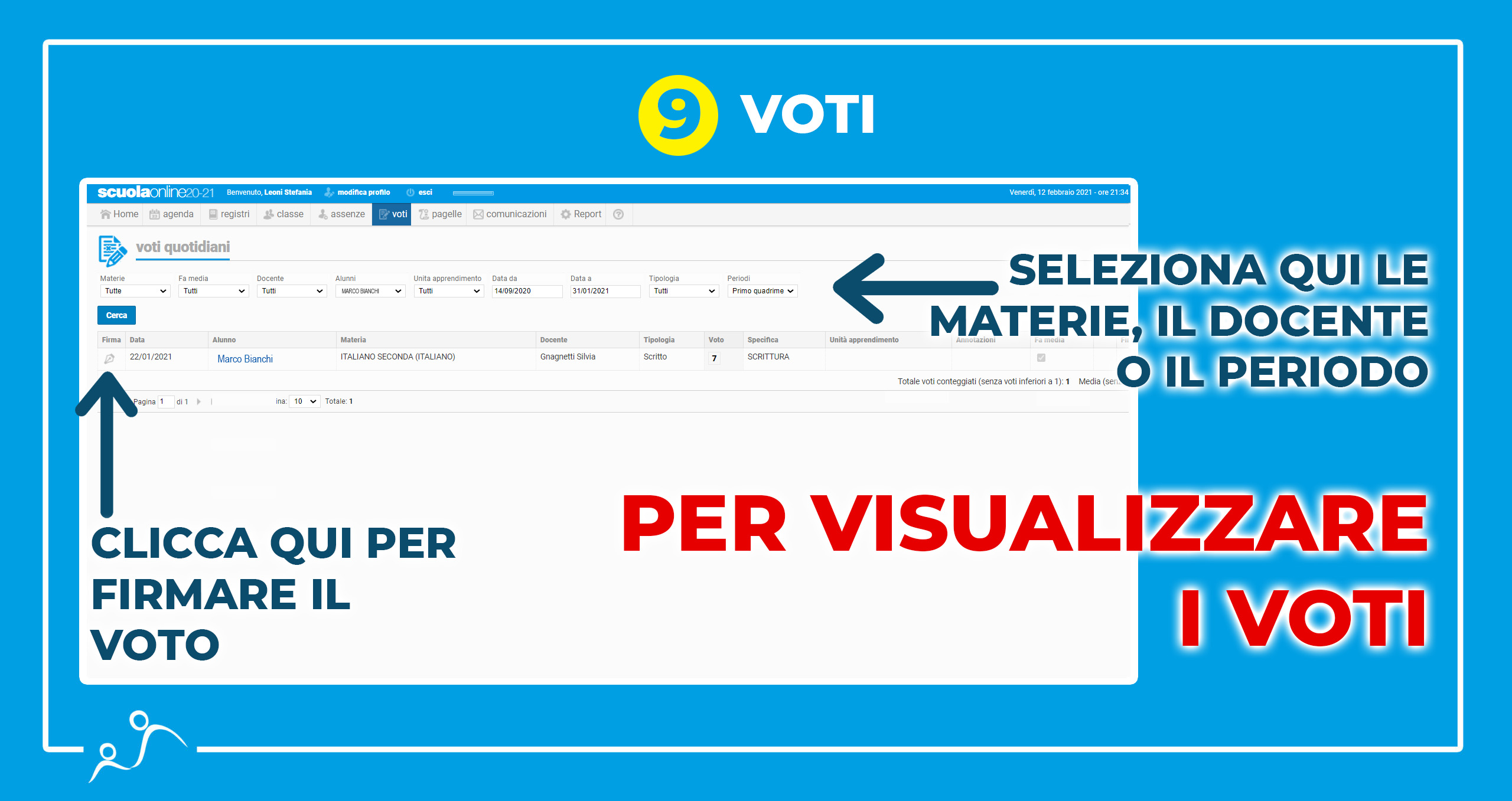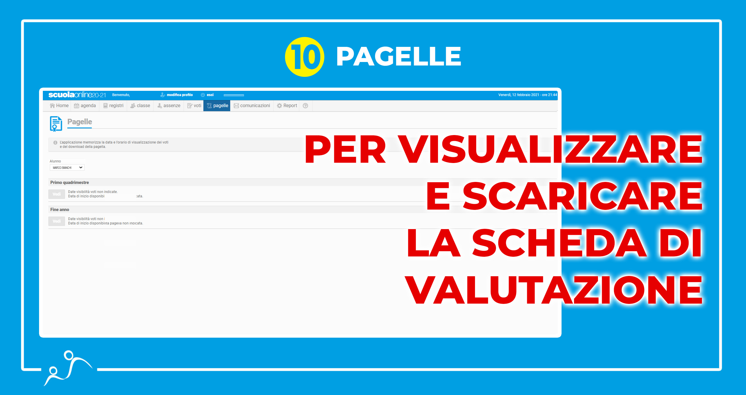 In occasione del termine del primo quadrimestre, forniremo ad ogni genitore la possibilità di accedere al registro elettronico “ScuolaOnline”. Riceverete una mail con nome utente e password per accedere.