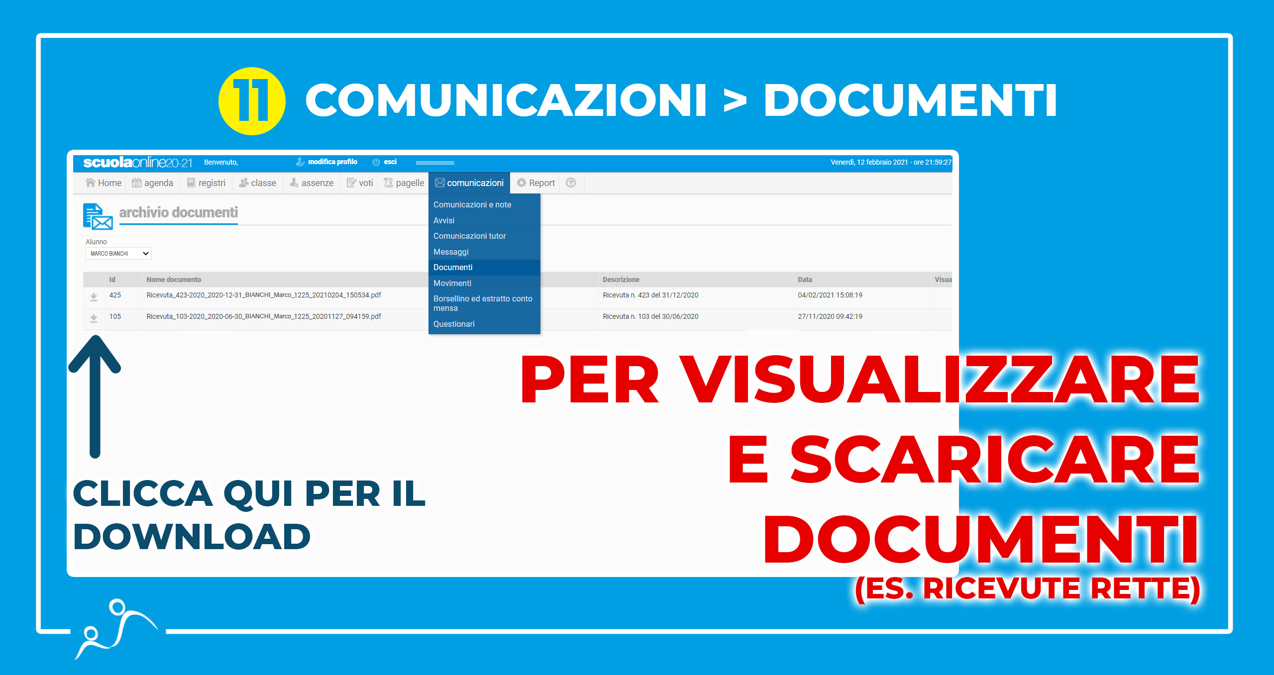 - La possibilità di scaricare le ricevute delle rette nella sezione “documenti”.