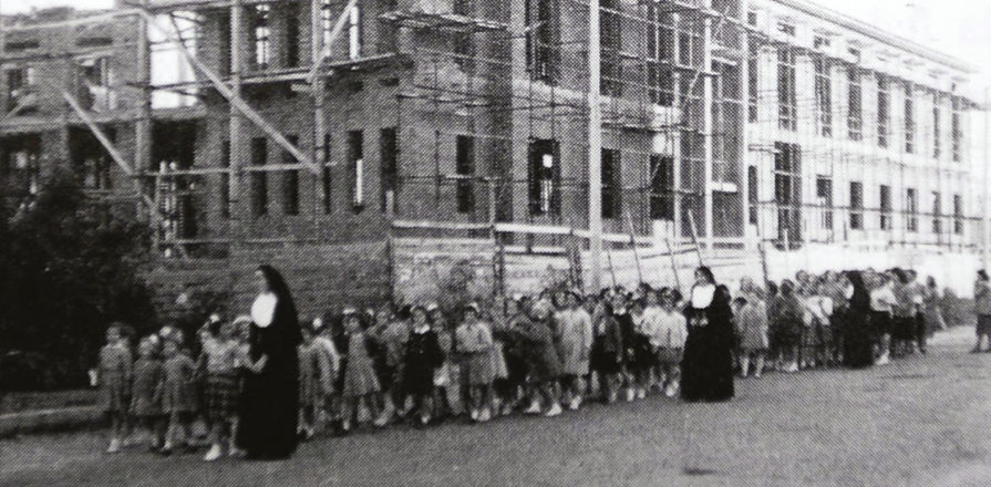 Il 21 novembre 1954 sorse il nuovo asilo. La prima pietra fu posta il 26 giugno 1949, secondo il progetto dell’Architetto Dino Reggiori. La scuola diventa un punto di riferimento per il quartiere, in particolare per le ragazze, che in alcuni ambienti del nuovo edificio di via Suzzani, vivono l’esperienza dell’Oratorio femminile. Si aggiungeranno poi le attività di doposcuola e il laboratorio di cucito e di ricamo.