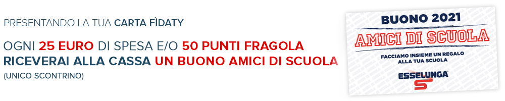 La promozione è valida anche sul sito di spesa on line www.esselungaacasa.it e nelle Profumerie EsserBella. Consegna i Buoni raccolti alla scuola che desideri premiare: la aiuterai ad ottenere gratuitamente le attrezzature informatiche e multimediali e il materiale didattico più utile per le sue esigenze.