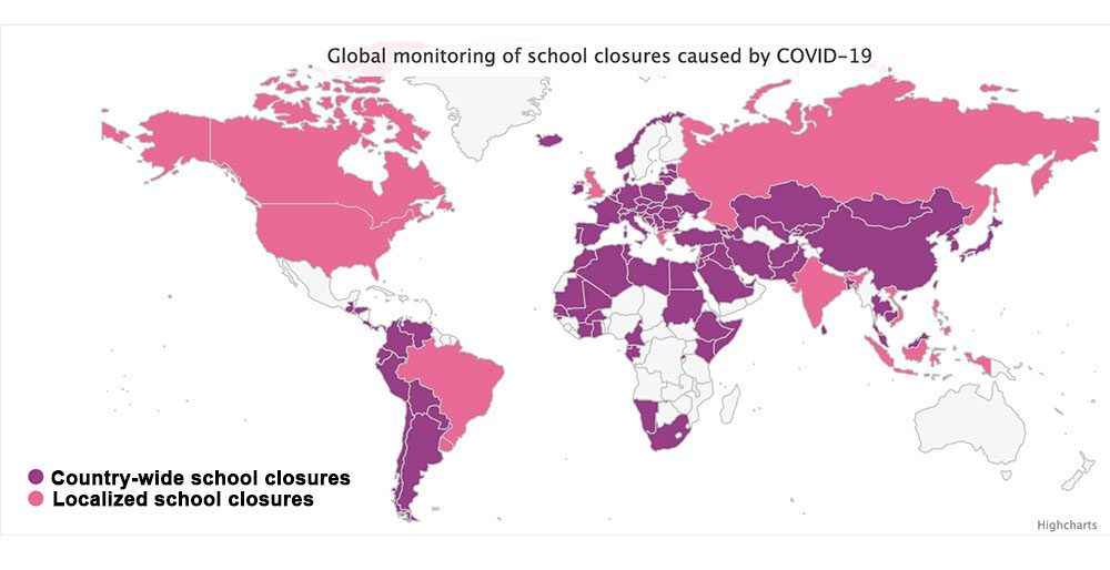 Paesi colpiti dalla chiusura delle scuole durante l'Emergenza