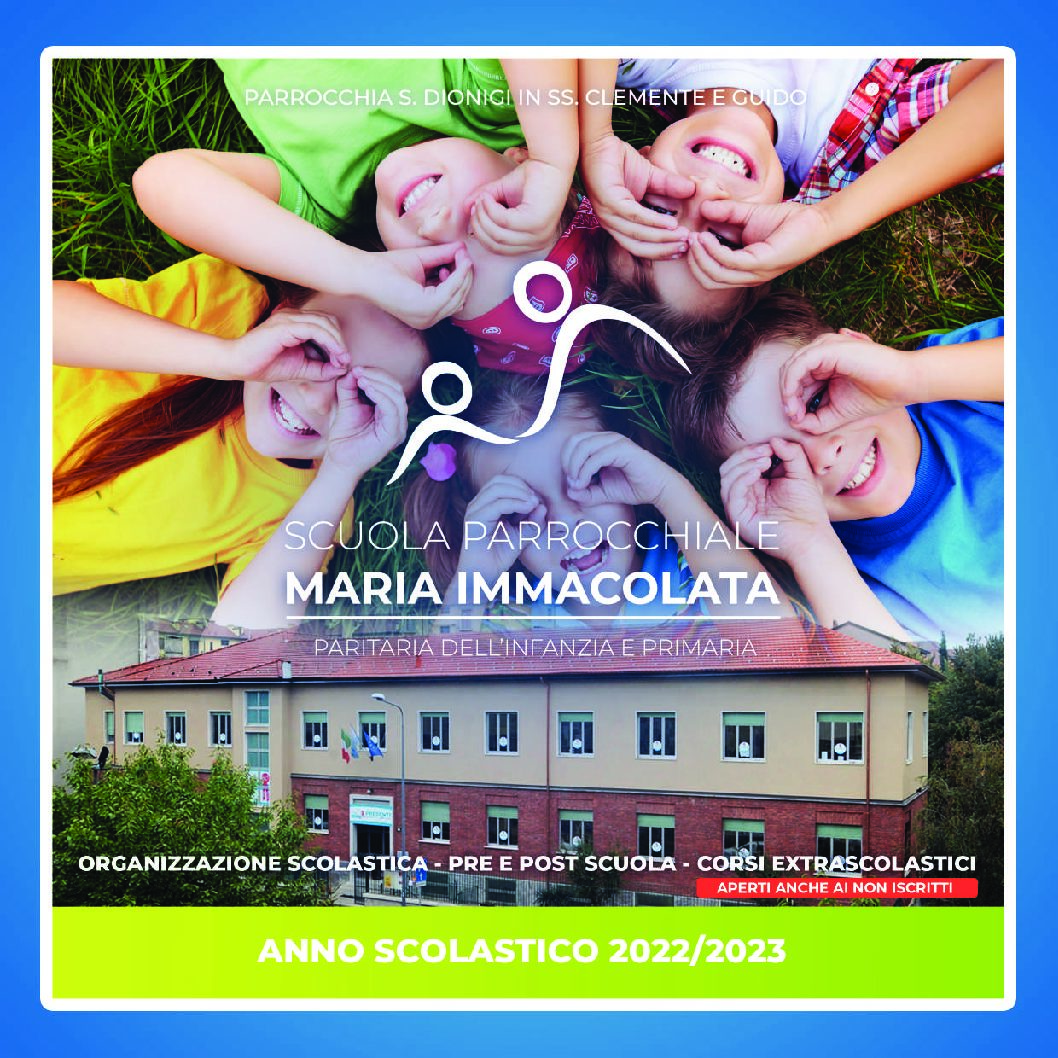 La scuola Parrocchiale “Maria Immacolata” nasce dalla felice combinazione di due fattori: la richiesta delle famiglie di proseguire l’educazione cristiana dei figli in un contesto omogeneo alla propria esperienza di fede e l’intuizione del Parroco sulla decisività della scuola nel percorso formativo della persona. Due motivazioni che a più di 90 anni di distanza dalla fondazione della scuola dell’Infanzia e a 40 da quella della scuola Primaria, permangono nella loro validità e attualità.