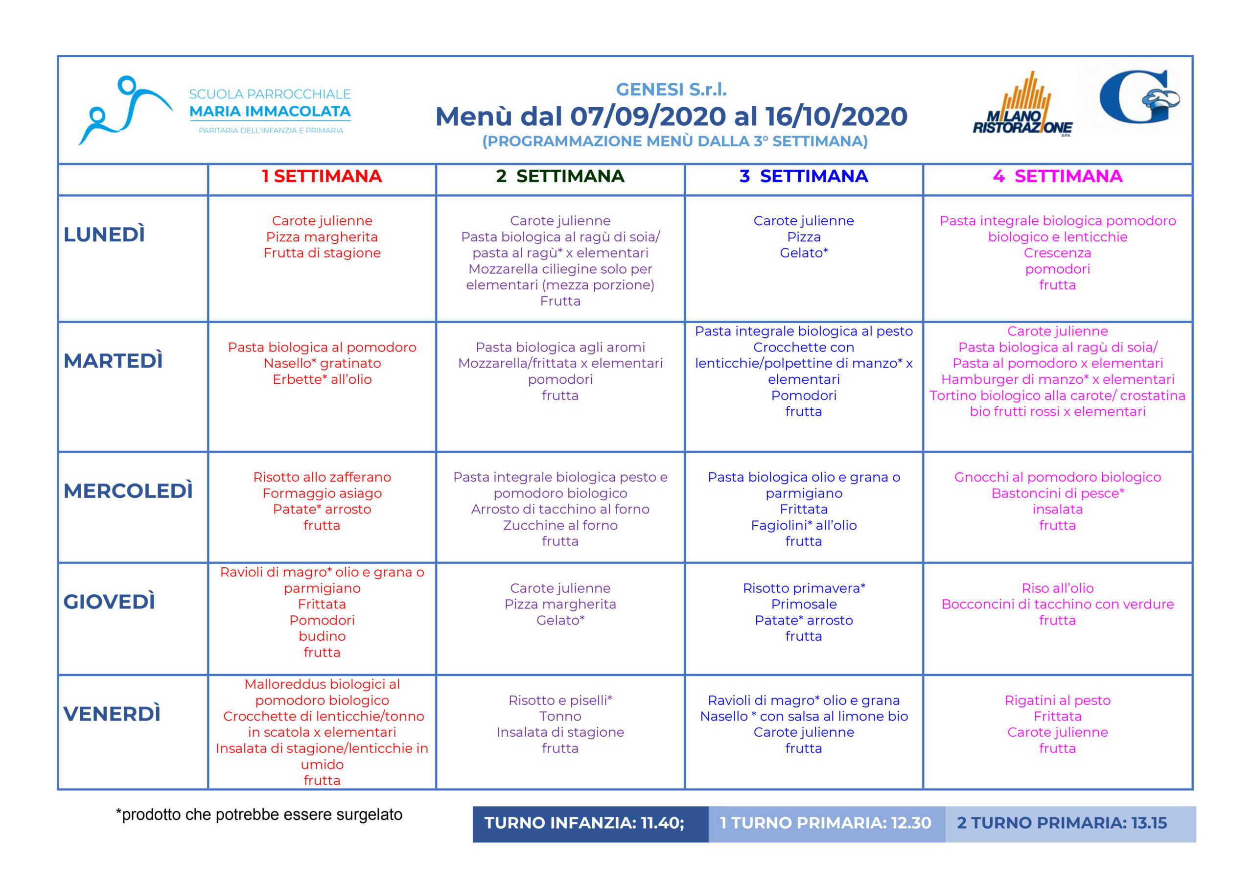 Menù dal 07/09/2020 al 16/10/2020