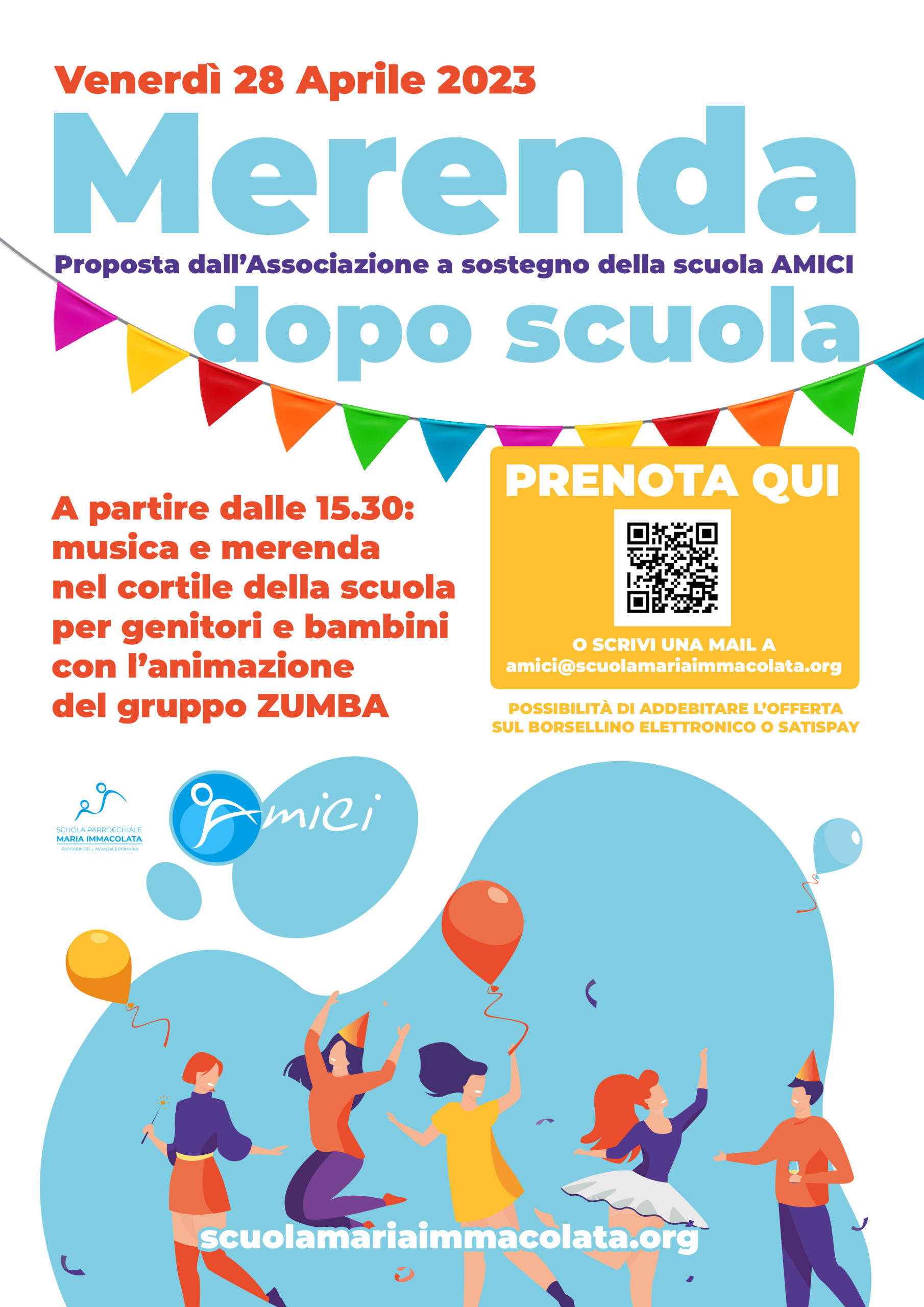 Ritornano i pomeriggi di animazione nel cortile della scuola proposti dall’Associazione AMICI. Venerdì 28 Aprile dalle 15.30 (orario di uscita dei bambini della Scuola dell’Infanzia) saranno presenti i volontari dell’Associazione con musica e merenda per tutti i bambini (dell’Infanzia e della Primaria) e i loro genitori.
