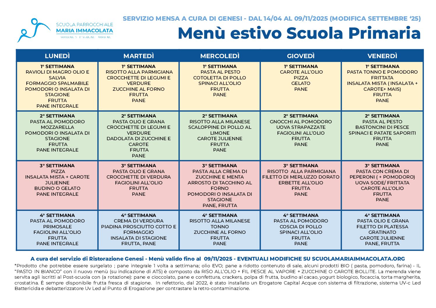 Modifiche al menù estivo della Scuola Primaria