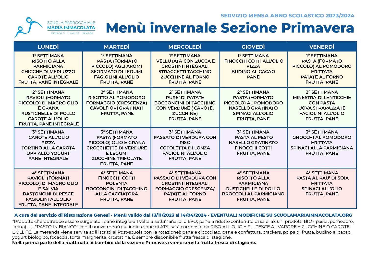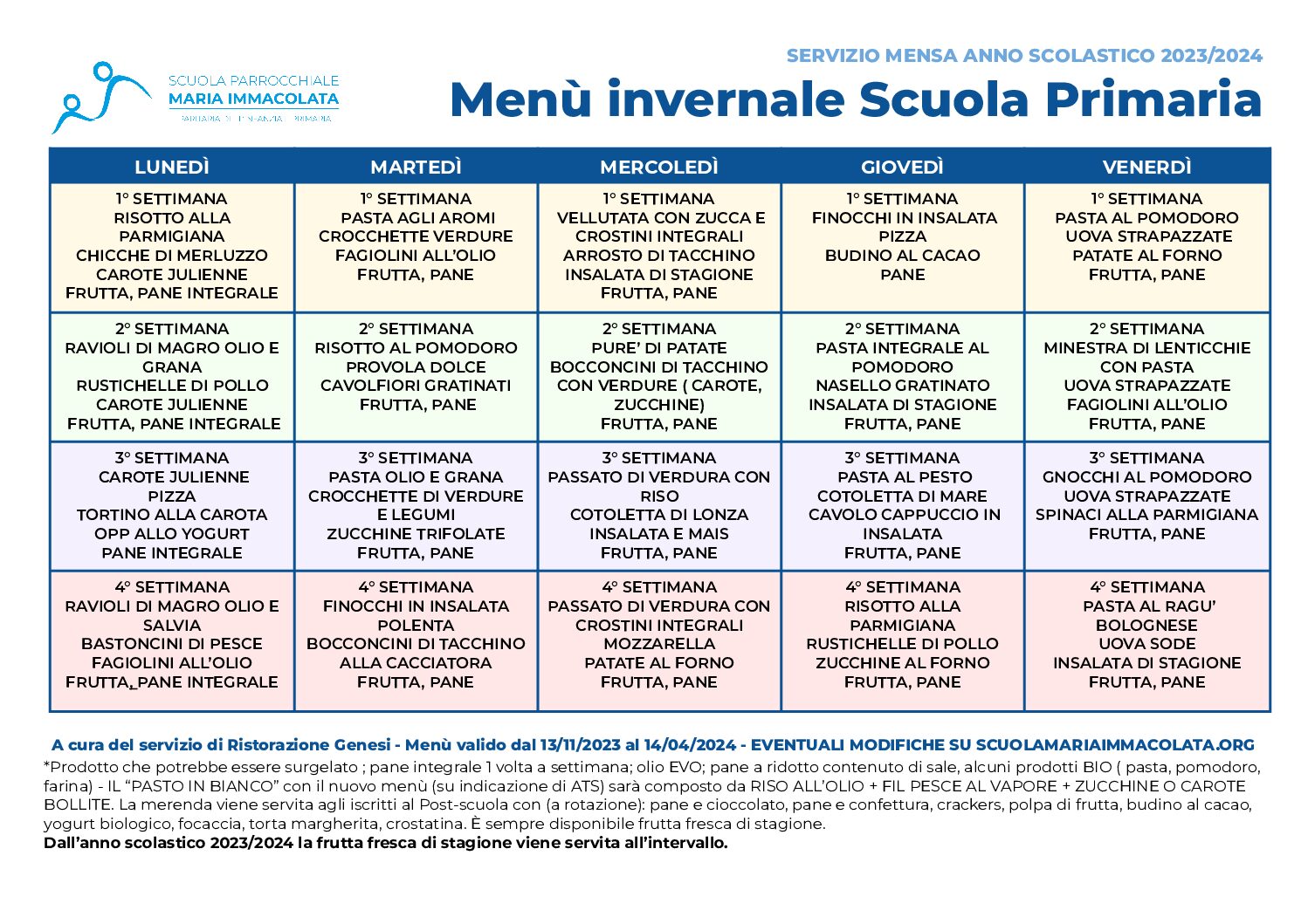 Modifiche al menù invernale per 12, 13 e 14 febbraio 2024
