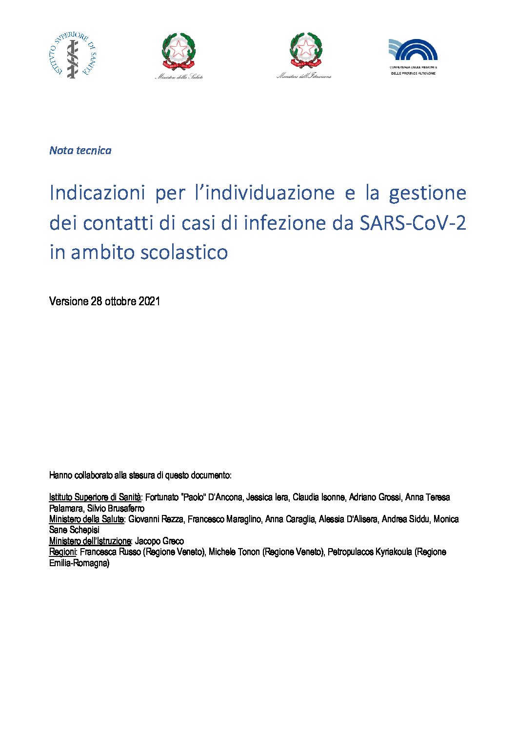 Nuove indicazioni per l’individuazione e la gestione dei contatti di casi di infezione da SARS-CoV-2 in ambito scolastico