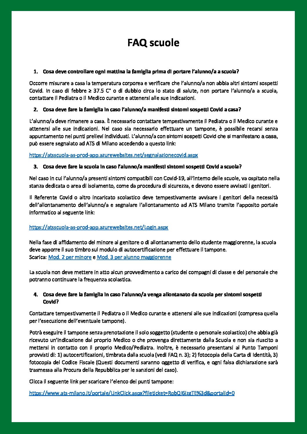 Regione Lombardia ha aggiornato le indicazioni relative alla sorveglianza dei casi Covid 19 e dei relativi contatti in ambito scolastico.