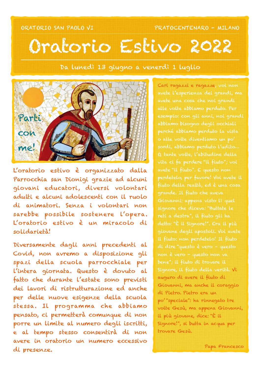Oratorio Estivo 2022 dal 13 giugno al 1 luglio 2022 presso l’Oratorio S. Paolo VI