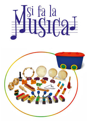 - SET MUSICA PER SCUOLA MATERNA: Con il supporto di musicisti e docenti per rispondere alle esigenze degli insegnanti di ogni ordine e grado è stata individuata una composizione di strumenti che coinvolge 38 studenti. Ogni kit è suddiviso in una sezione ritmica, una percussiva ed una melodica, potendo così eseguire qualsiasi tipo di brano musicale. Il kit si compone di: 3 cembali in legno con piattelli, 3 tamburelli con pelle naturale e battente, 4 animali in legno con sonaglio o piattini, 4 set di legnetti, 4 animali in legno shaker, 1 cimes con base in legno e battente, 1 triangolo con battente, 1 set nacchere in legno, 1 woodblock in legno con battente, 1 woodblock guiro in legno, tonale con battente, 2 set maracas in plastica, 1 cabaza, 1 campanaccio con battente, 1 set barre intonate con battente e borsa, 1 contenitore in plastica con coperchio. Per altre info: www.domusmusica.it