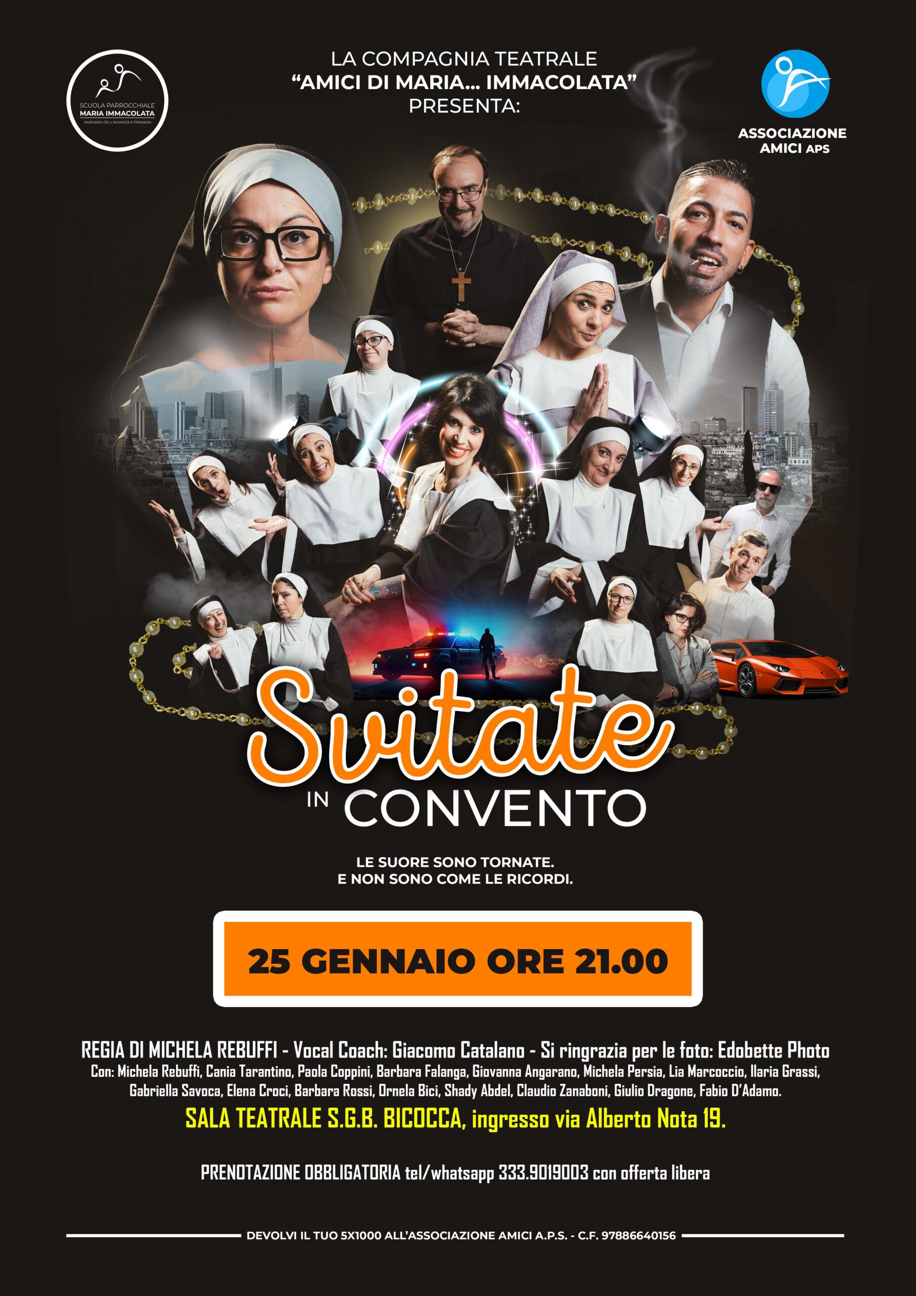 Tornano, questa volta al teatro della Parrocchia della Bicocca, sabato 25 gennaio 2025 alle ore 21.00, i genitori della nostra scuola con l’apprezzato spettacolo “Svitate in convento".