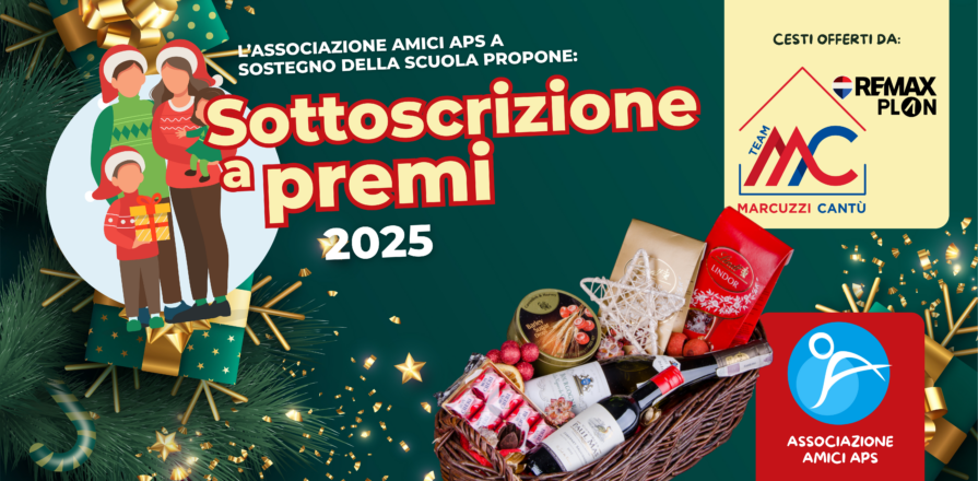 L’estrazione della Sottoscrizione a premi sarà venerdì 19 dicembre 2025, in occasione della cena di Natale nel refettorio e nel teatro della scuola.