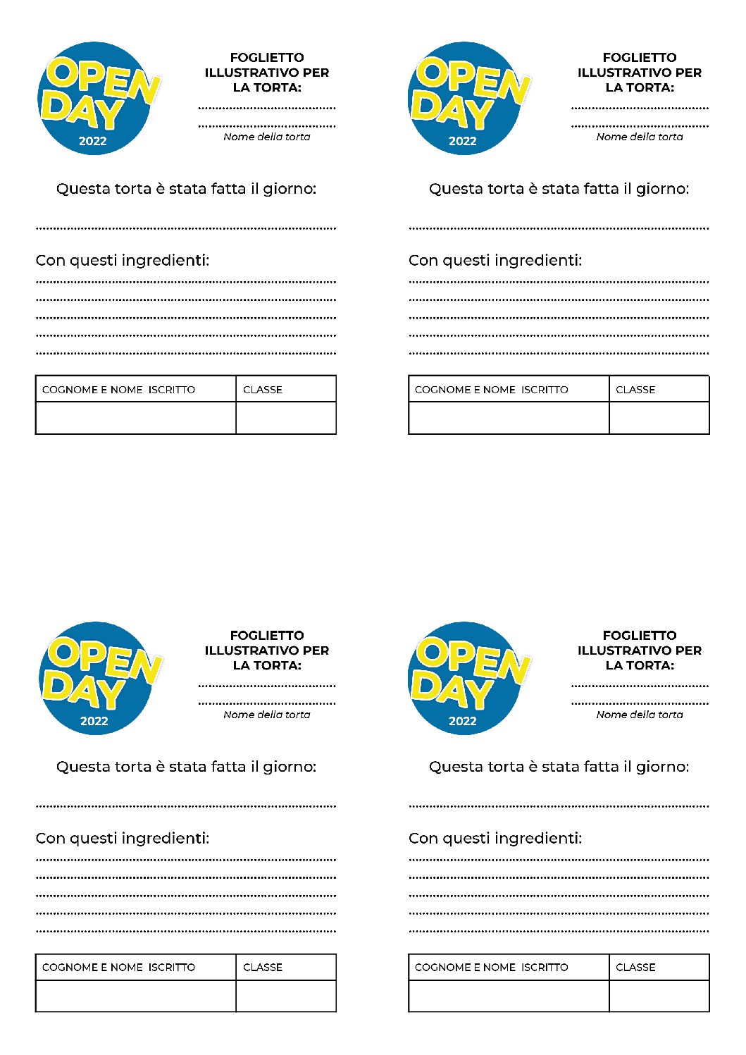 Porta una torta per l’Open Day