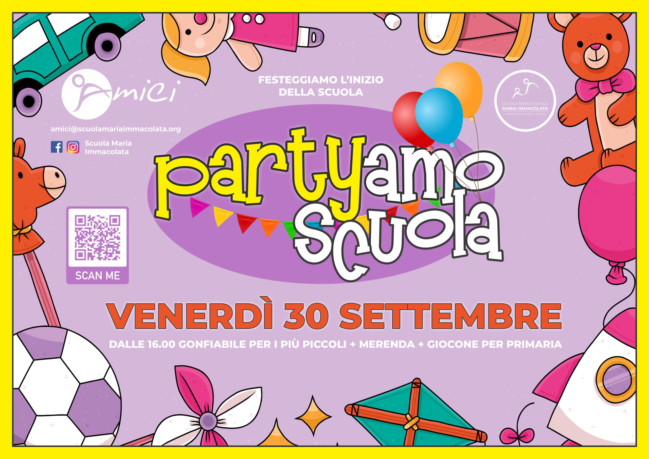 L'Associazione a sostegno della scuola AMICI propone per venerdì 30 settembre 2022 alle 16.00, un pomeriggio di festa e giochi per i bambini della Scuola dell'Infanzia e Primaria.